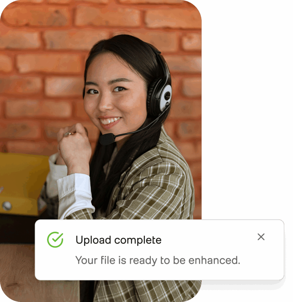 Seamless audio processing, designed for developers. Remove background noise, boost clarity, and optimize sound for on-demand audio. Fast, efficient, and easily integrated into your production software.