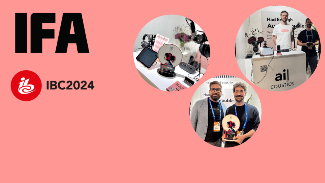 It’s been a busy September for the ai-coustics team, with two conferences to kickstart autumn. Over the past few weeks, members of the ai-coustics team went to IFA (or the Internationale Funkausstellung Berlin, one of the oldest industrial exhibitions in Germany) and IBC (the International Broadcasting Convention) in Amsterdam. It was an exciting time — meeting others in our field, sharing the results of our speech enhancement technology with a mobile booth, and even winning an award!